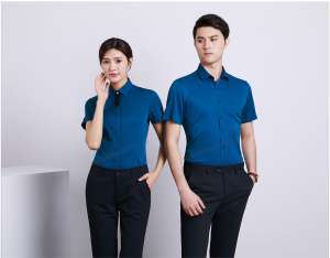 襯衫定制 時尚襯衫男女士夏季 寶藍色短袖襯衫
