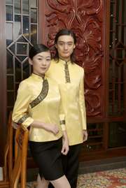工服定制 高端酒店工服男女士 黃色長袖酒店工服